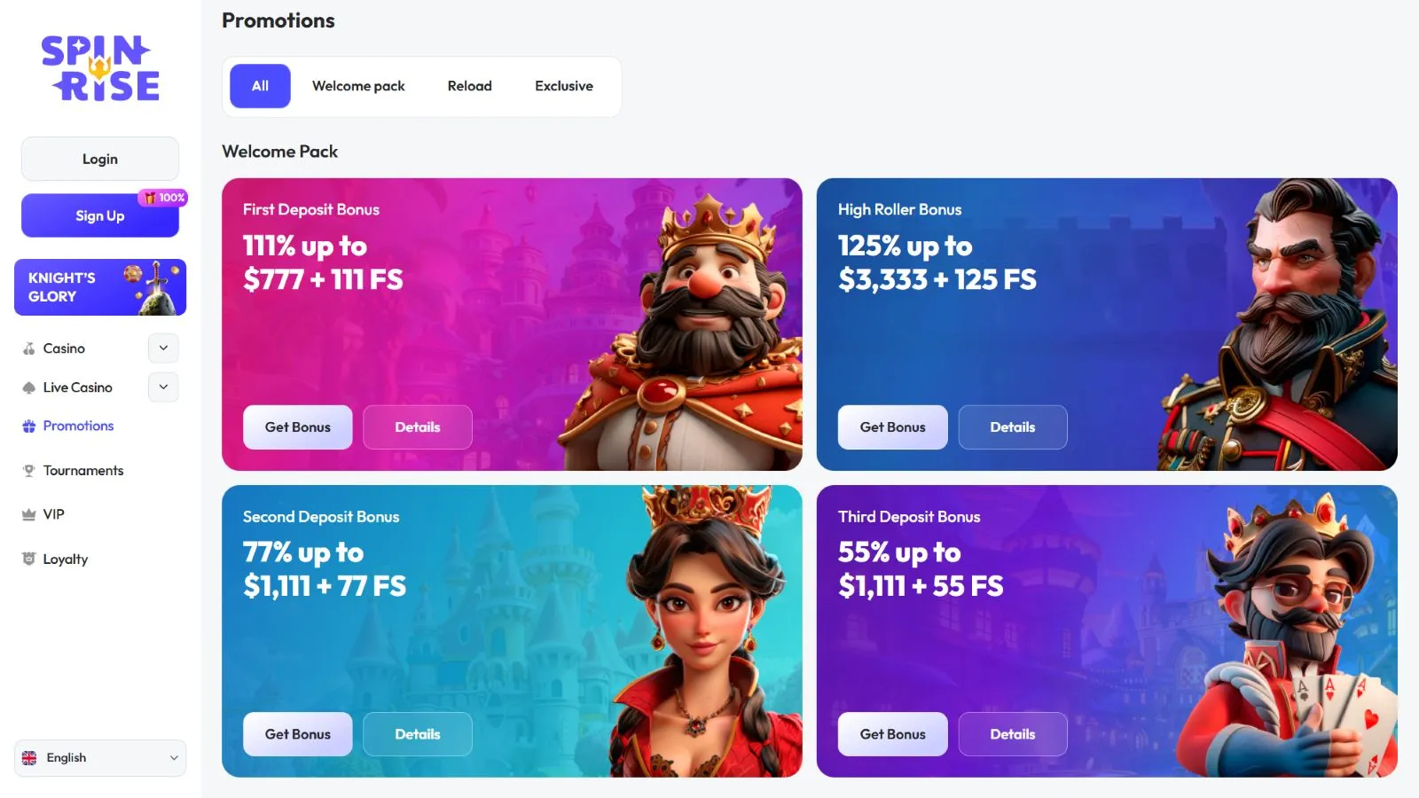 Spinrise backs up its extensive games library with numerous bonuses to boost your bankroll. There are bonuses to claim almost every day of the week, and even bigger exclusive bonuses for VIP players.
