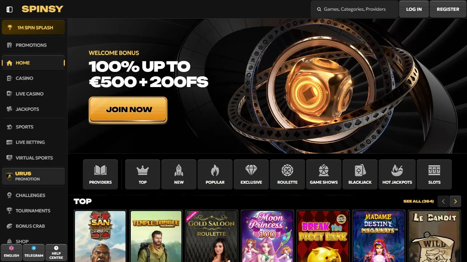 Established in 2024, Spinsy is a crypto casino packed with 10,500+ games, exciting sports betting markets, and numerous bonuses. The online gambling site offers its services in English, German, French, and 10+ other languages.