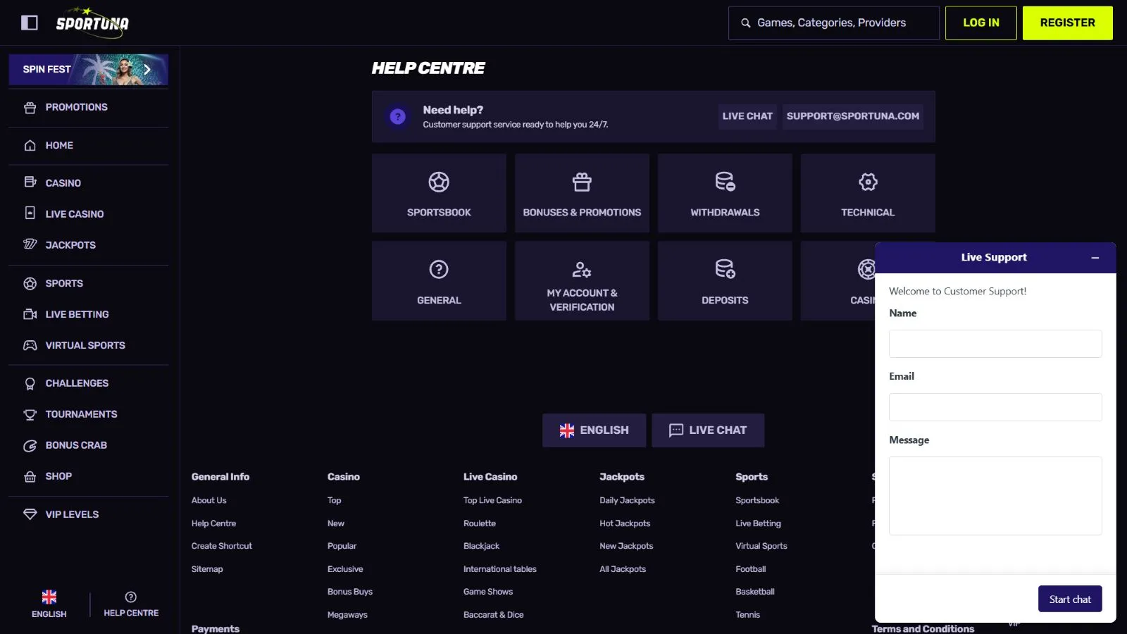 When the need for assistance arises at Sportuna casino, you’ll have several options to get in touch with the dedicated customer support team: