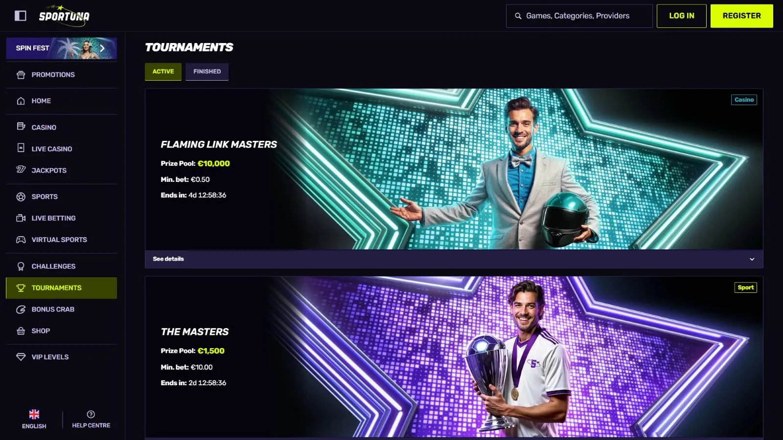 Sportuna casino adds an extra layer of thrill and excitement through its regular casino tournaments. These exciting events are more than just gameplay, offering a plethora of rewards such as cash prizes, bonus funds, cool gadgets, and of course, the much-loved free spins. To take part in these adrenaline-pumping competitions, players simply need to click on the burger menu in the top left corner of the screen and select Tournaments.