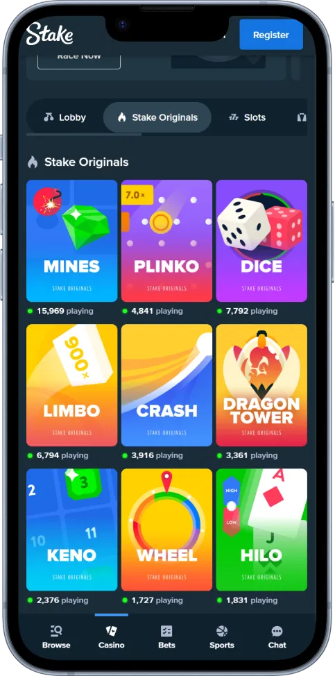 The online crypto casino features exclusive games that cannot be found anywhere else. They fall under the Stake Originals and Stake Exclusives categories. Here are some of them: