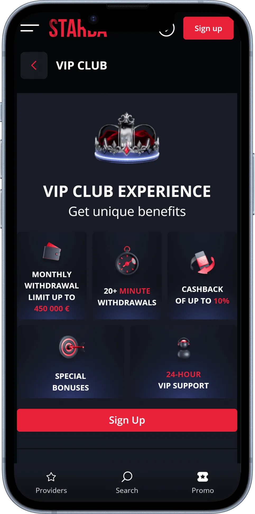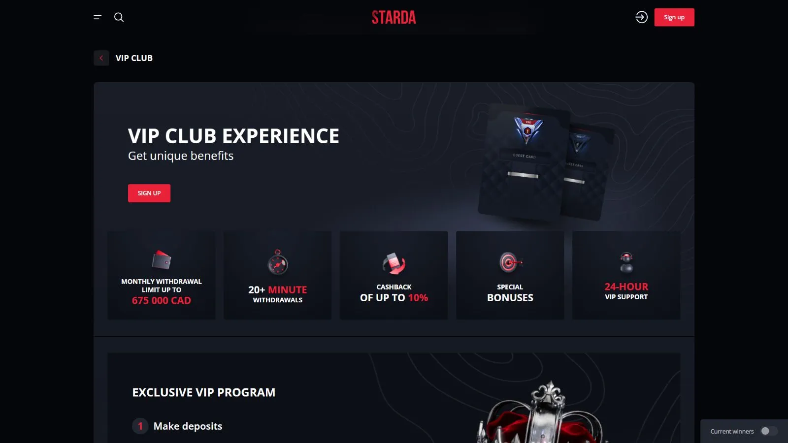 From the moment you sign up and start playing for real money at Starda, you begin to enjoy the perks of the VIP program. This VIP program has just four ranks, with benefits increasing as you progress through each. Each higher level contains all the benefits from the previous and more.