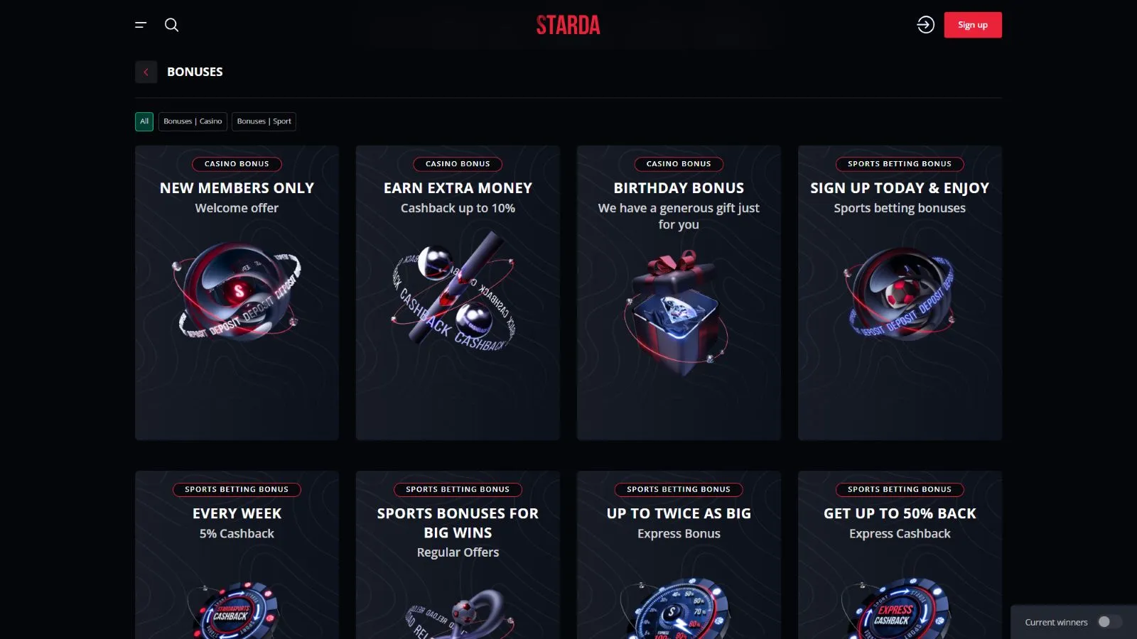 You can get a Starda casino bonus code by visiting the promotions page of the website regularly. We will also update this page with new promo codes when available.