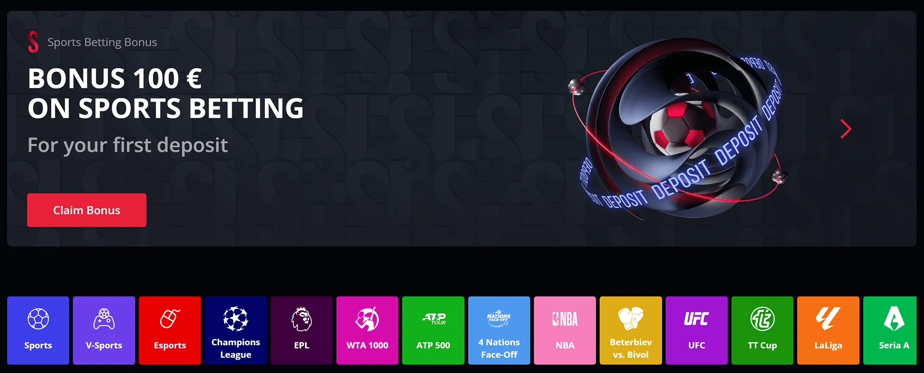 If you prefer to use your welcome offer for sports instead, pick the “Sports bonus” during registration. This offer gives you 150% up to €100 on your first deposit.
