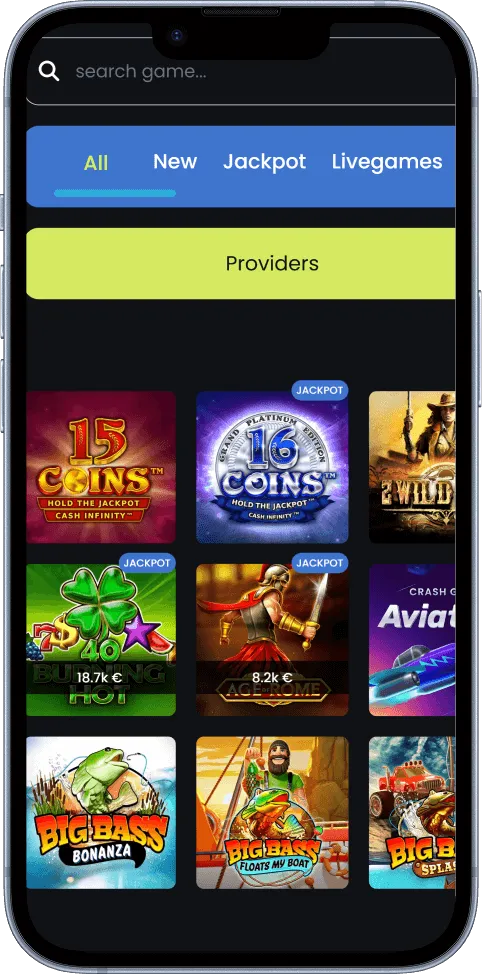 The games are carefully selected from 20+ game providers, including Playtech, Wizard Games, Evoplay, Spinmatic, and Caleta.