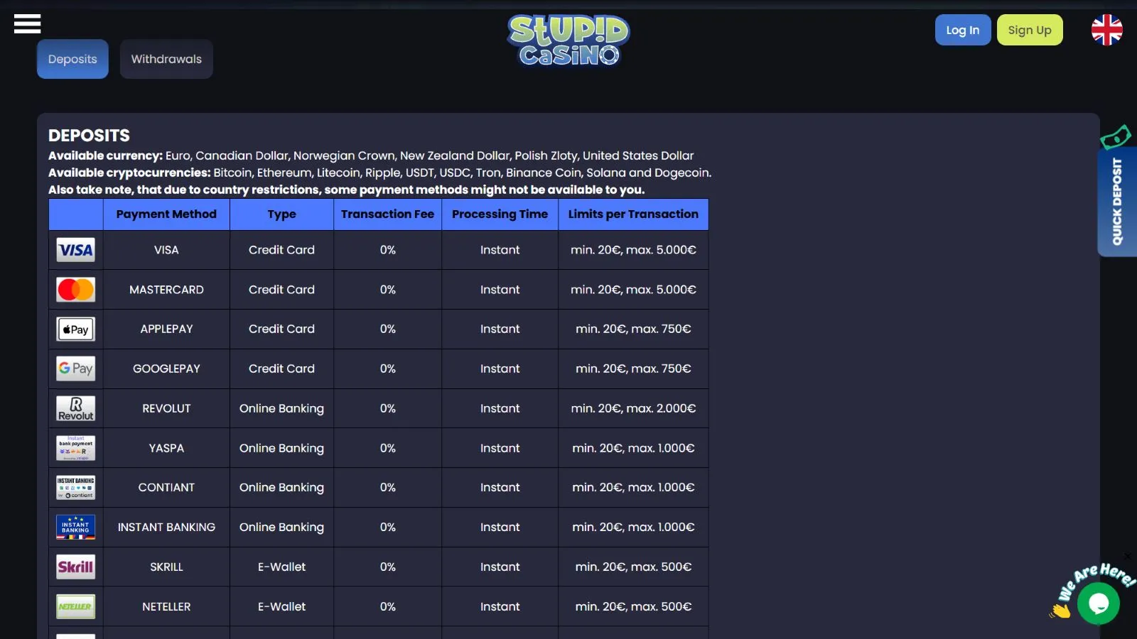 Have fun exploring Stupid Casino today, but don’t forget to use the necessary gambling limits.
