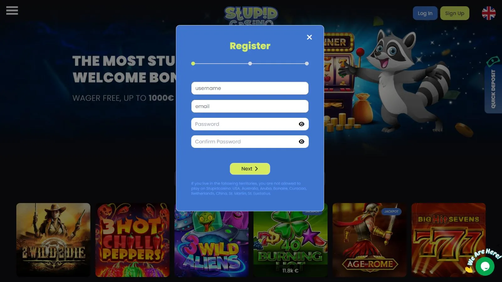 It takes less than three minutes to set up your account and start playing games at Stupid Casino. Here are the steps to follow: