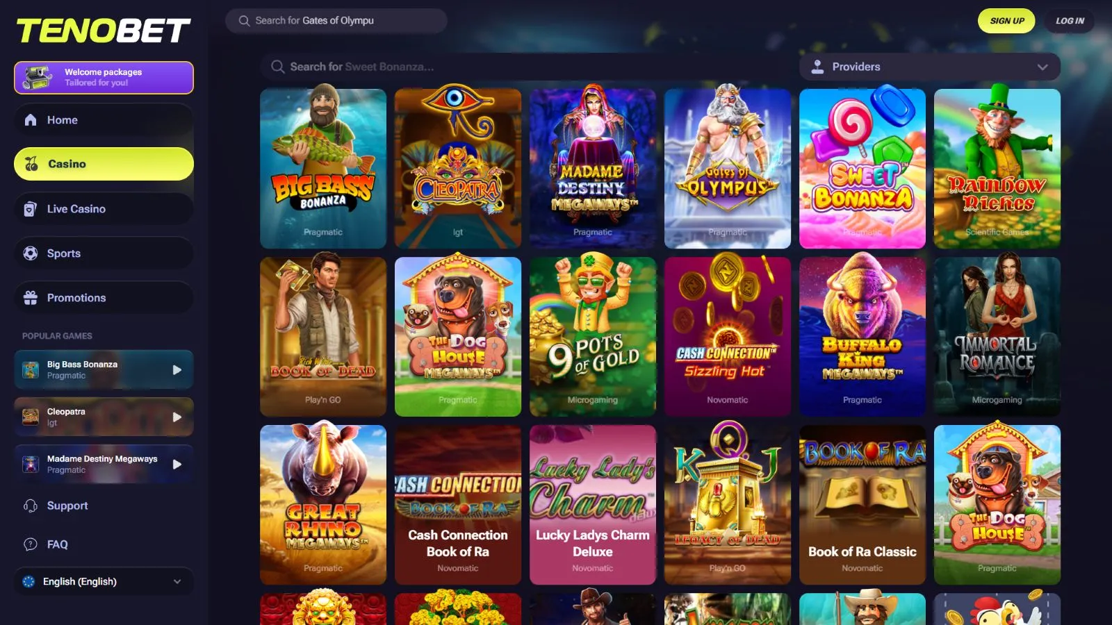 TenoBet’s slots section is a clear standout with thousands of options across classic reels, video slots, megaways, and progressives. You will find many titles with thrilling mechanics, interesting bonus buys, and huge win potentials enough to keep you spinning.