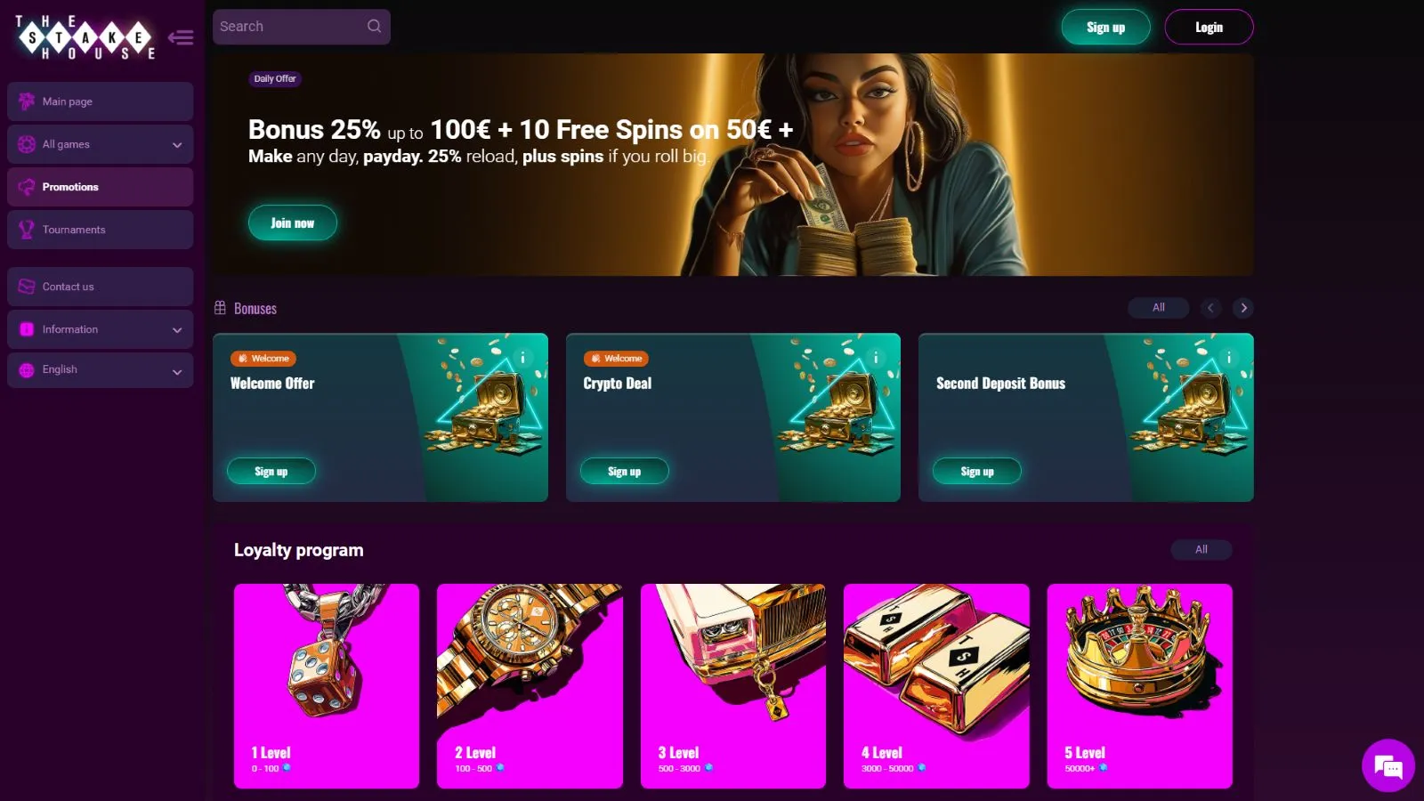 Launched in 2025, The StakeHouse is a top-notch online gambling site with an outstanding collection of games, huge bonuses, and numerous tournaments. This crypto casino offers a quick and straightforward registration process and can be accessed only in English.