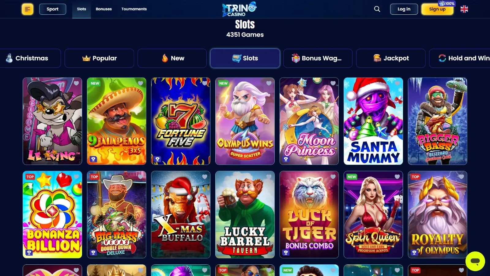 In the lobby, you’ll find 4,500+ online slots, including jackpots, hold and wins, bonus buy titles, megaways, and many other titles. Trino manages to feature the most popular slots with exciting and rewarding bonuses, ensuring you never feel bored.