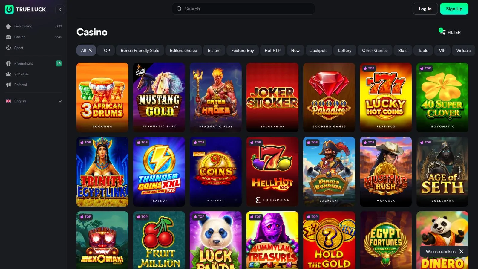 Established in 2025, Trueluck Casino is a fast-growing online gambling site with 7,000+ games, huge bonuses, and an extensive sportsbook. This crypto casino is mobile-friendly and can be accessed in English, Spanish, French, Greek, and German.