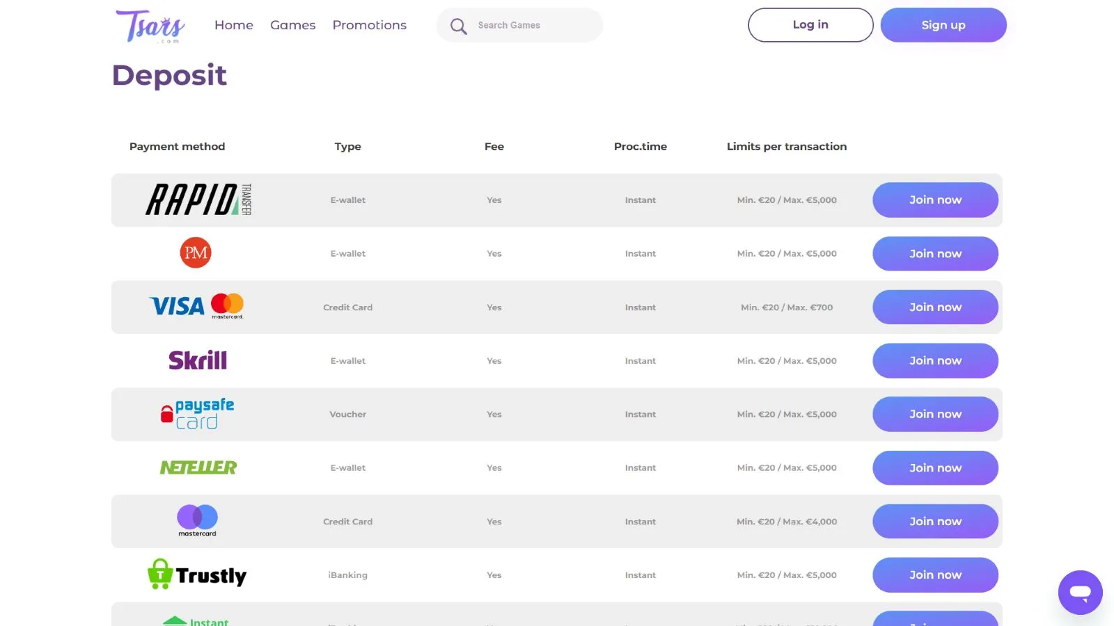 There are many deposit options that you can use on Tsars. Besides the traditional deposit options like a bank, credit/debit cards, and e-wallets, here you can use your cryptocurrencies as well.