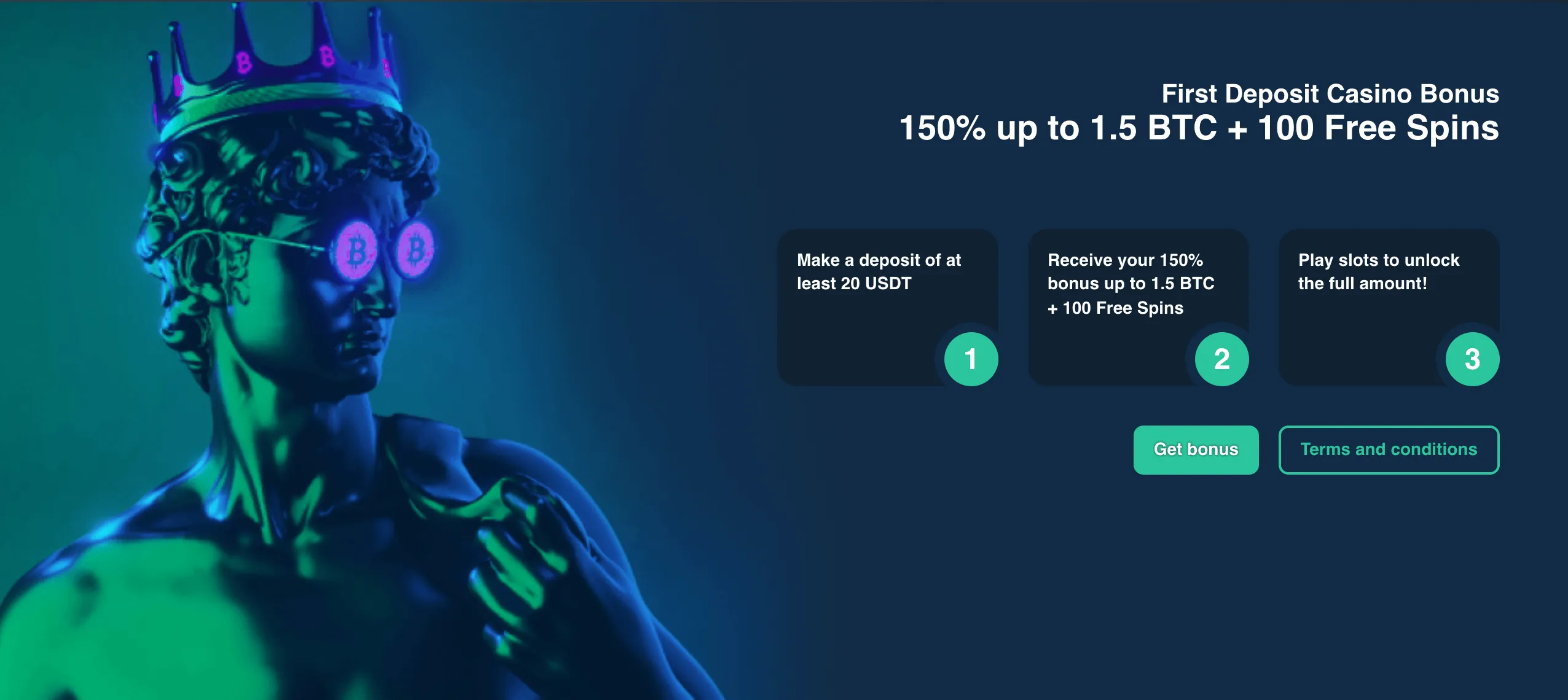 - 1st Deposit Bonus – 150% up to 1.5 BTC + 100 free spins