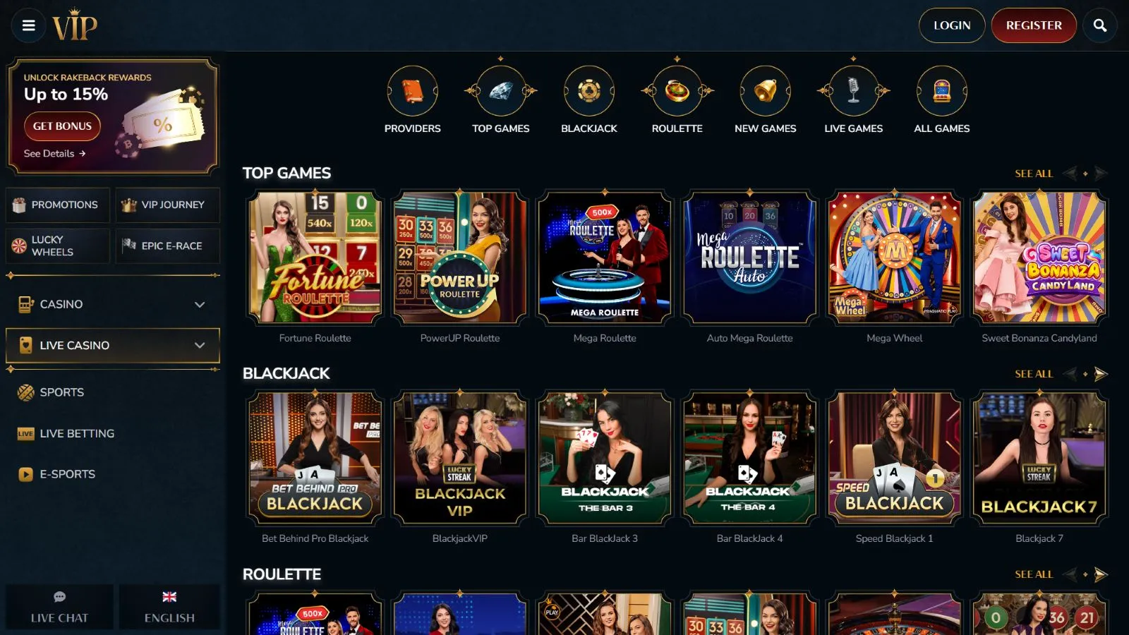 The VIP Casino live dealer collection is designed specially for you to enjoy the immersive and realistic experience of land-based casinos from the comfort of your home. There are about 500 live games in the lobby, with various categories available.