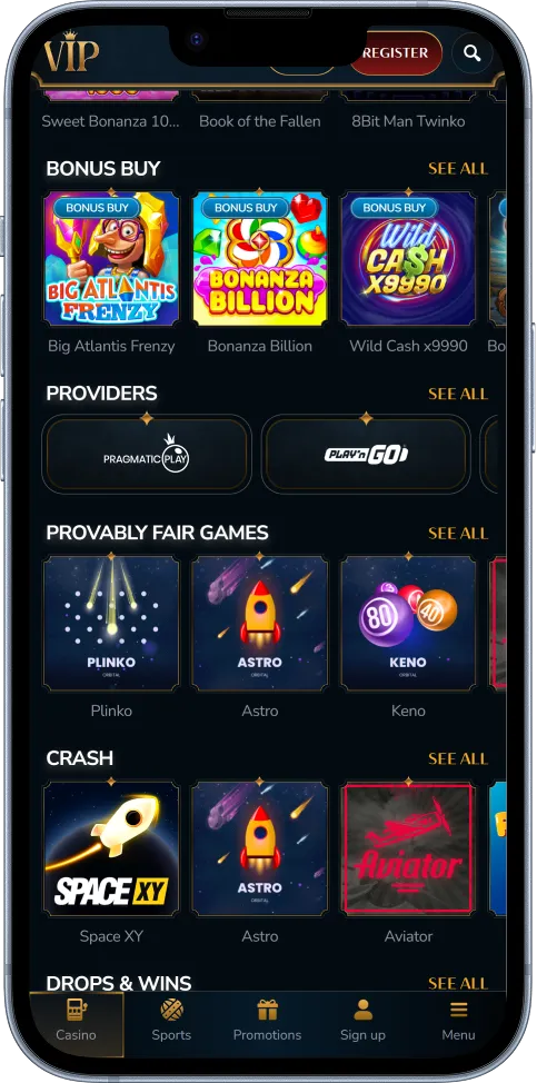 VIP Casino offers over 100 provably fair games, cutting across various categories like slots, crash games, instant wins, table games, Plinko, and Mines. Among these, you’ll discover more than 20 exciting Plinko variations and over 15 Mines games.