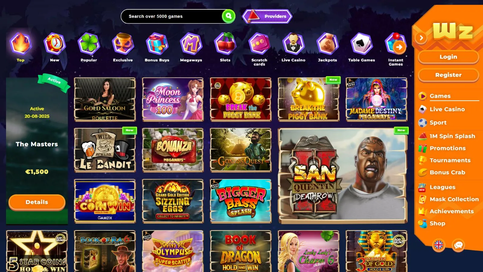 On the top of the page, there is a search field and a Provider filter. By clicking on “Providers, you will list all the providers that are available at Wazamba and the number of games that each provider has. Some popular game studios are Play N Go, Netent, Evolution Gaming, Pragmatic Play, Red Tiger, NoLimit City and Yggdrasil.