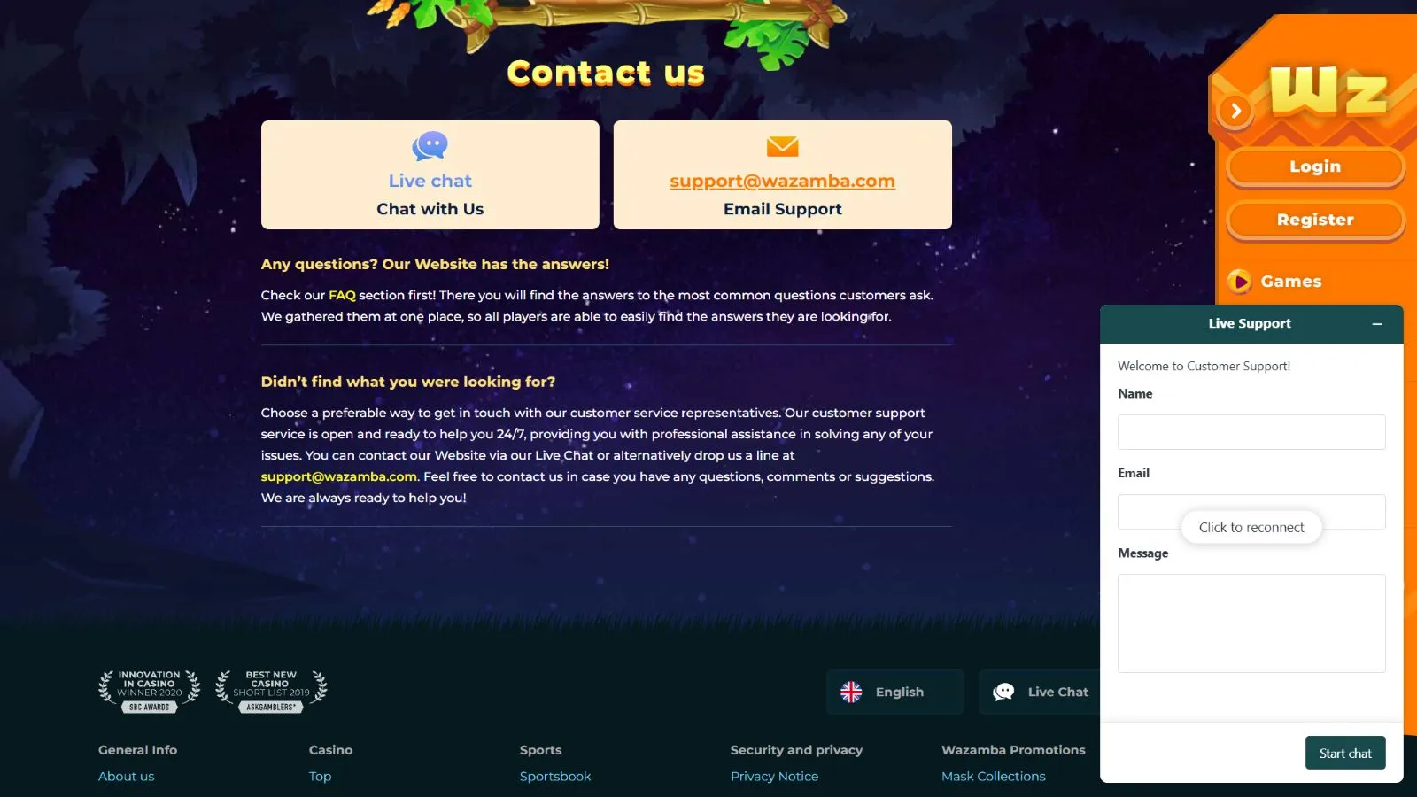 If you have any questions about anything related to the casino, its pages, the deposit options, or anything else, Wazamba has your back.
