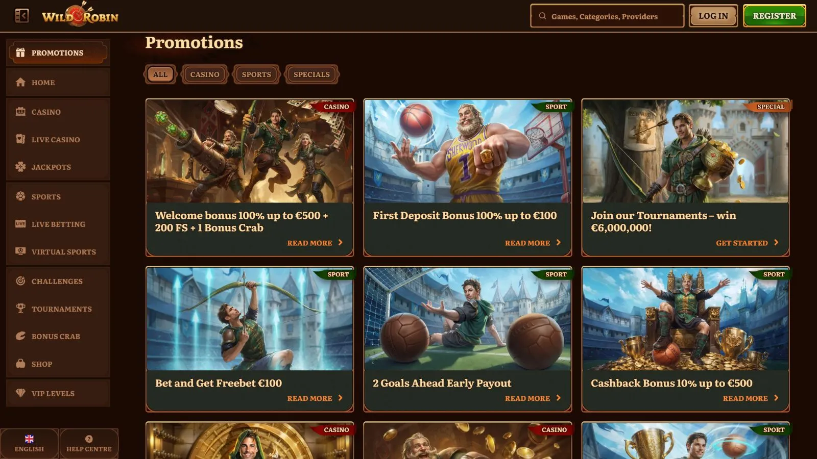 Wild Robin Casino provides a massive playground for gamblers with over 10,300 games in its lobby. These games are powered by 95+ providers, with Spinomenal, Pragmatic Play, and Playtech contributing over 550 games each.