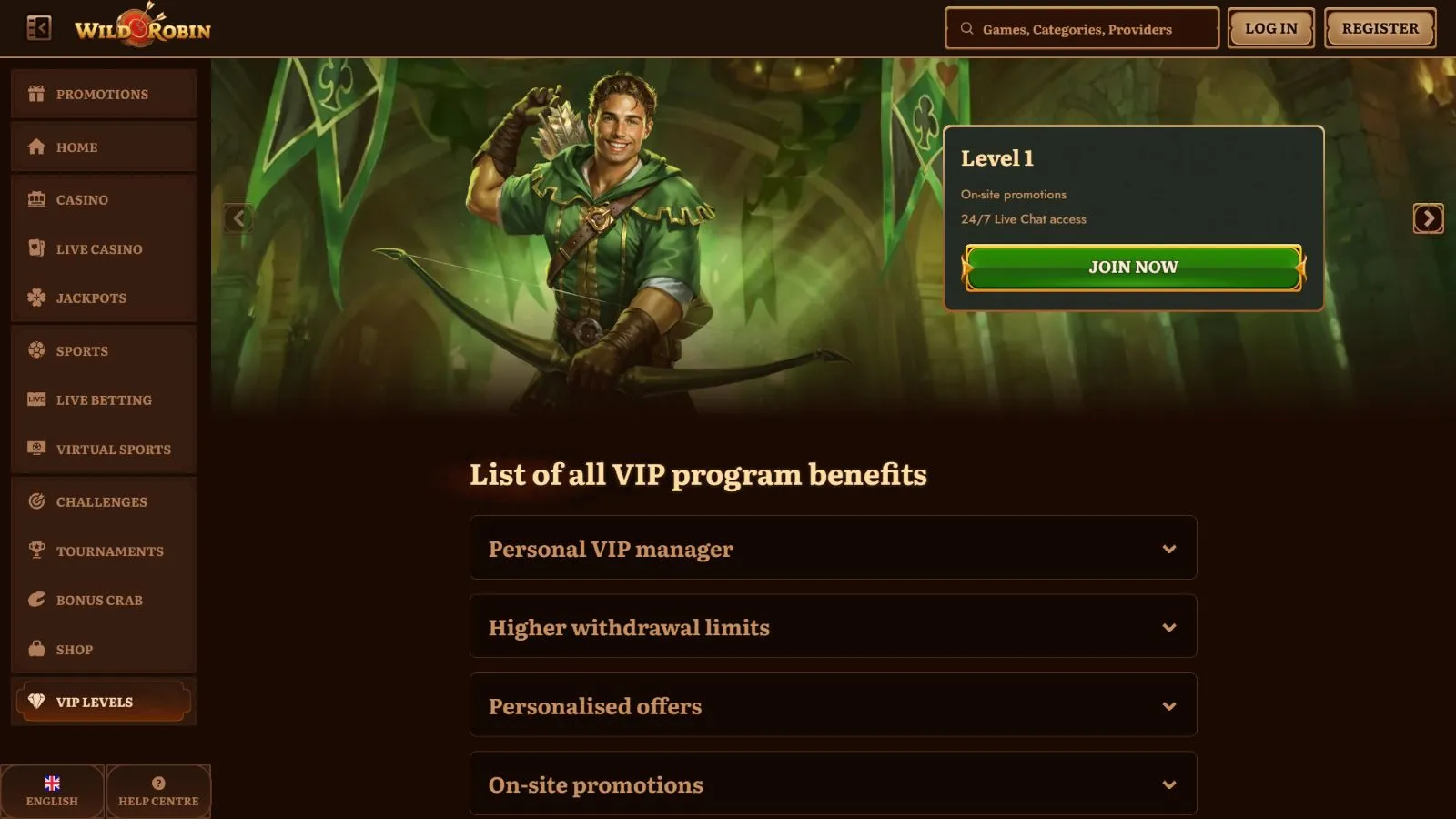 Wild Robin uses top-notch security tools like HTTPS encryption to secure players’ data and funds on its site. It also offers a comprehensive help center and 24/7 live chat to ensure players receive assistance readily.