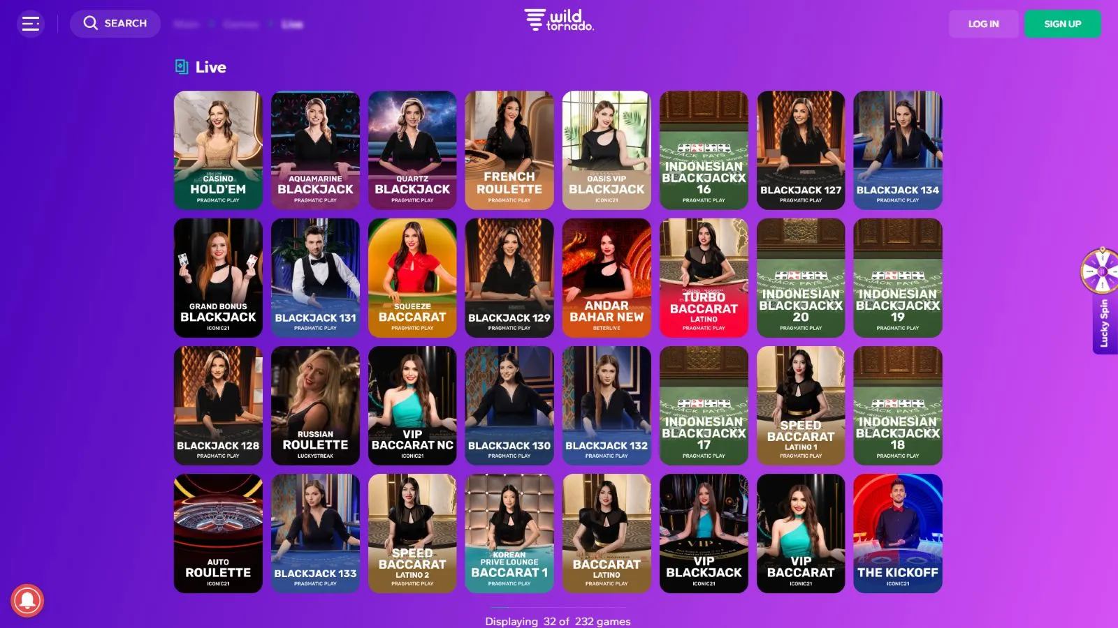 When you get tired of playing the slots games, you can visit the Wild Tornado table games platform. This section features multiple variants of Blackjack, Baccarat, Roulette, and Poker games. You also get to enjoy the live action at Wild Tornado Casino. The operator offers you several live dealer games like Casino Hold’Em, American Roulette, Blackjack Classic, and Baccarat Live.