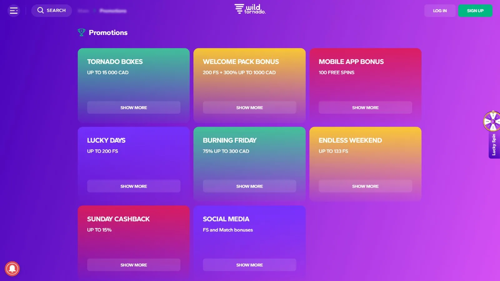Wild Tornado Casino also runs several tournaments available during specific periods with amazing cash prize offers. For example, there is a €2.5M Drops and Wins tournament, the €60k Cash Days tournament, and the €80,000 Summer Love tournament.