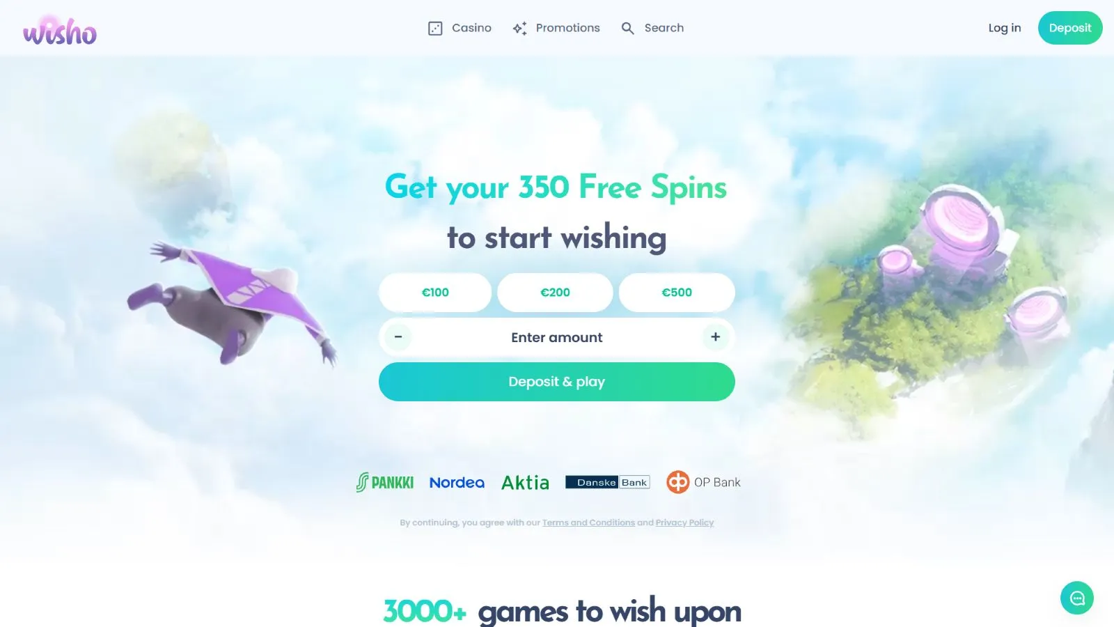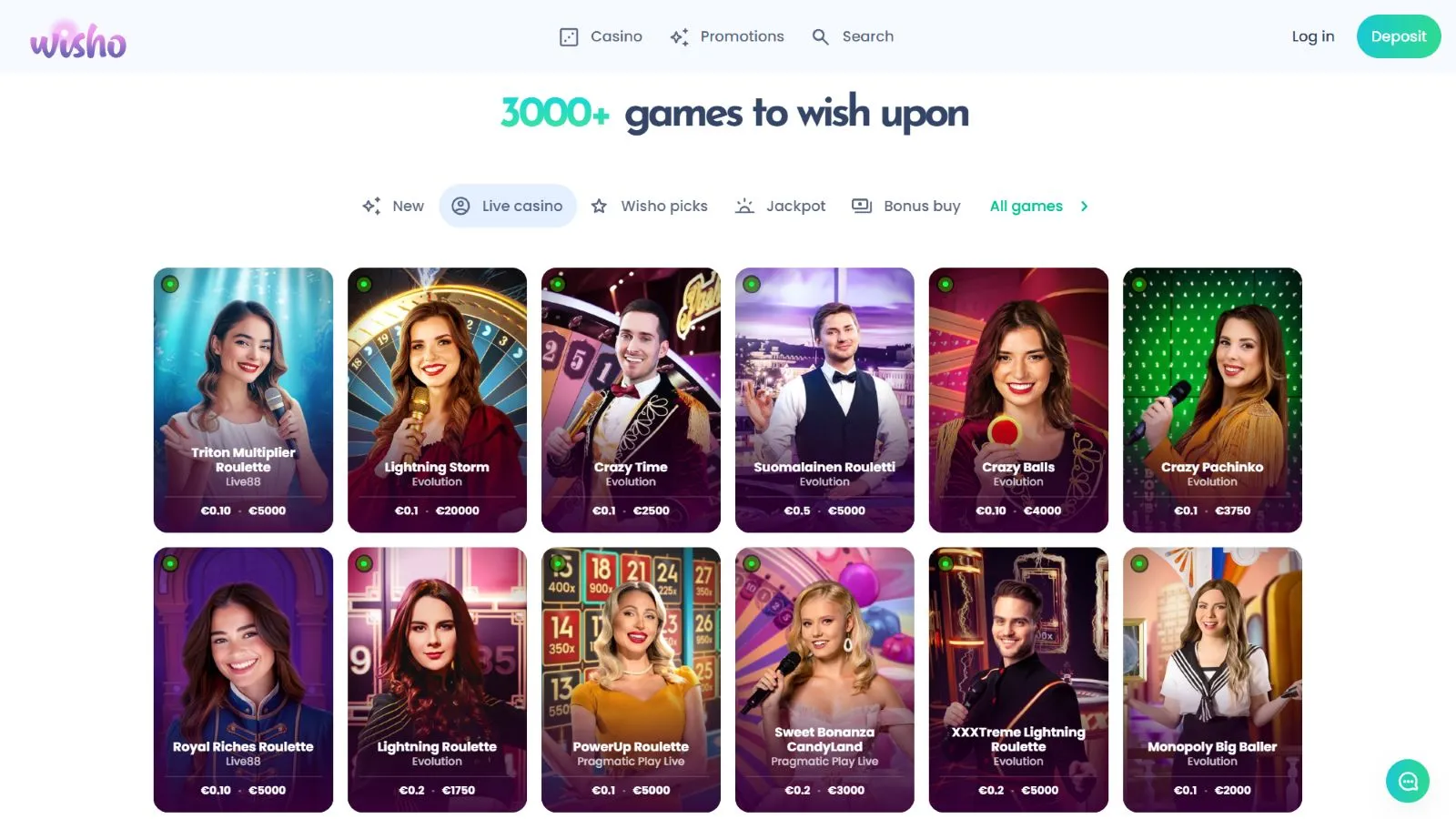 - The minimum deposit that you can make at Wisho is €20 regardless of the deposit method that you will choose.