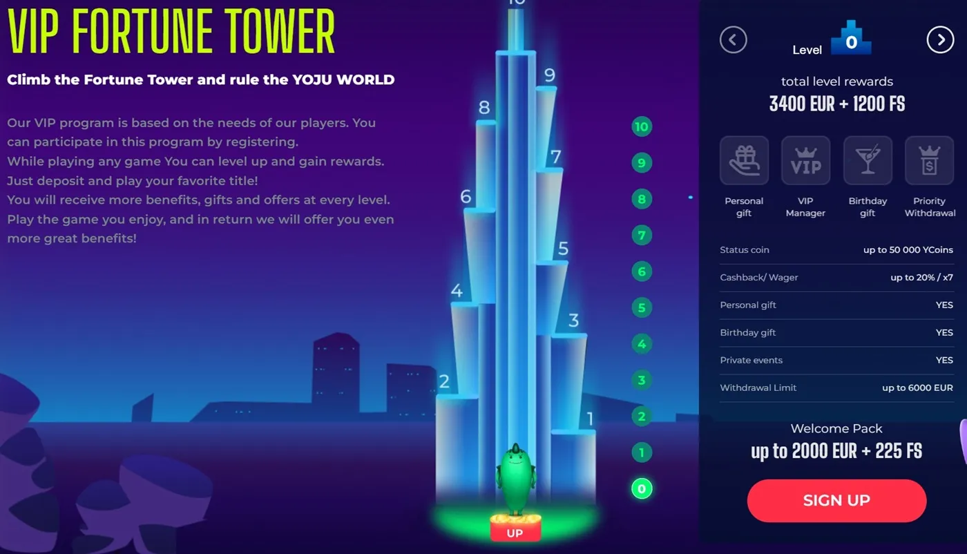 YOJU Casino has some of the best games and deposits bonus offers for cryptocurrency fanatics. The operator also has a VIP reward program for loyal players.