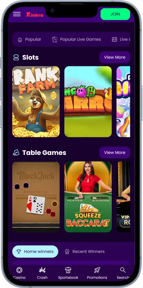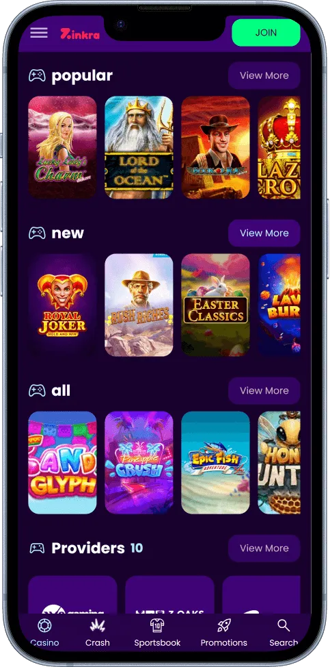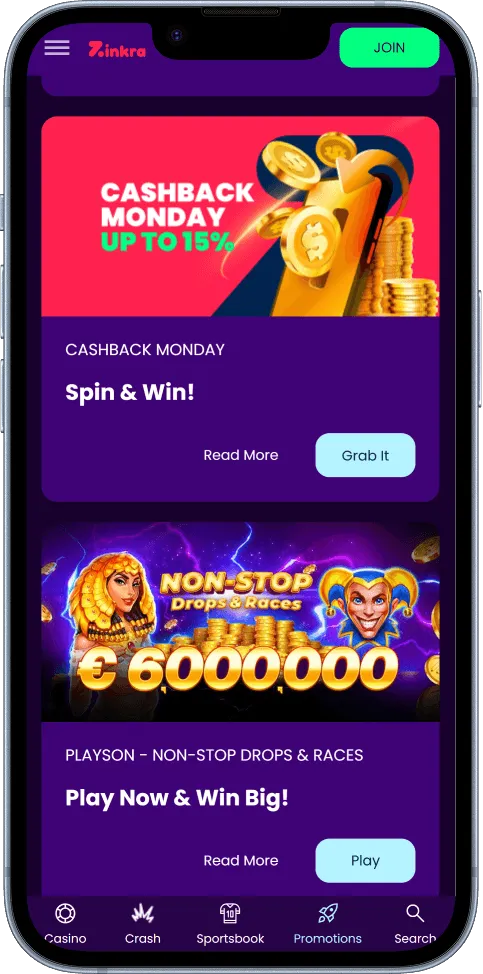 Zinkra offers you interesting gambling sessions, regardless of whether you choose to play with your mobile device or PC. The casino website was designed with mobile in mind, so it adjusts seamlessly to various smartphone screen sizes.