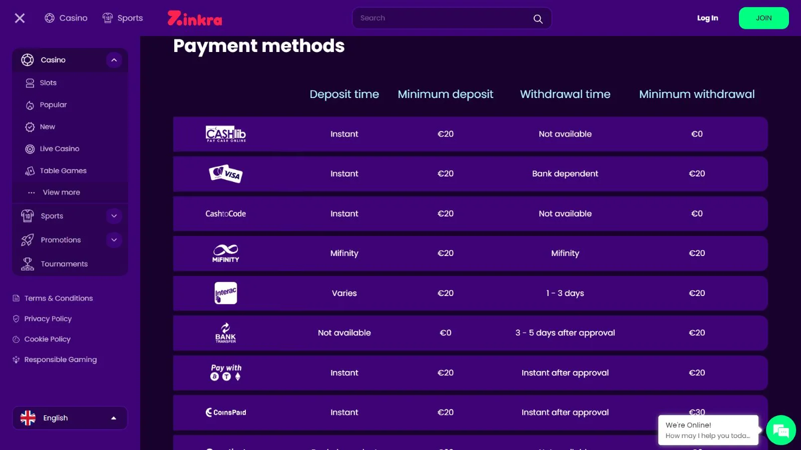 If you have any questions or need assistance, never hesitate to reach the Zinkra customer service team. The casino offers support channels via live chat, email, and FAQ. Sadly, the FAQ is quite limited, so you may not get answers to your questions there.