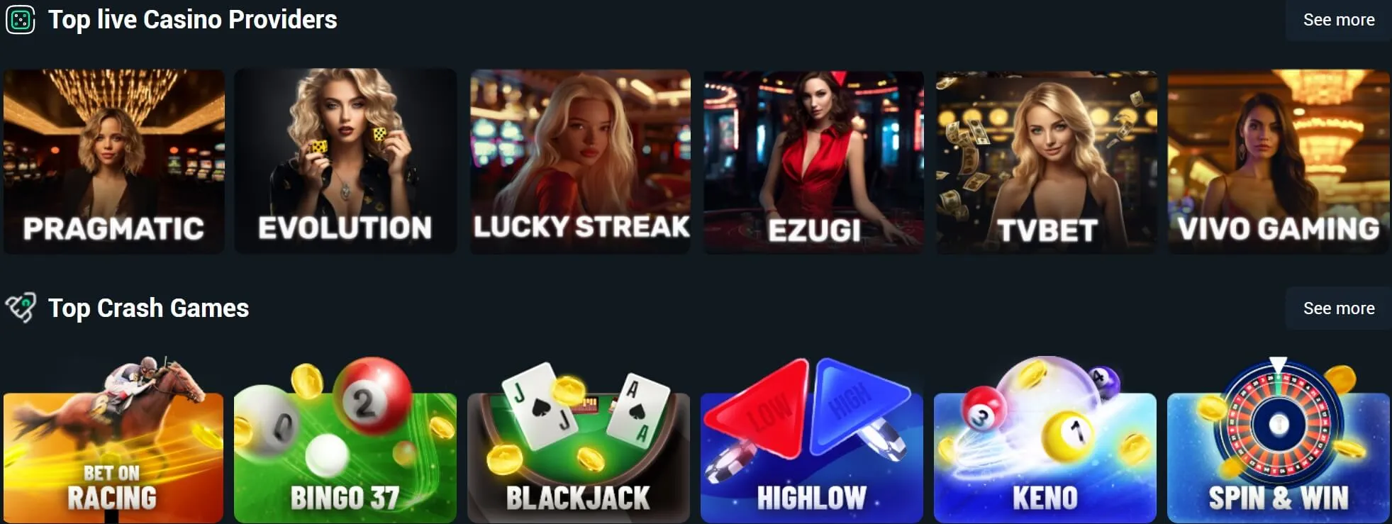 Zolobet has a section titled “Crash Games”. However, the section tends to contain a variety of games such as poker, keno, Hi-Lo, virtual sports, bingo, dice, Mines, Plinko, blackjack, and just about 3 crash games.