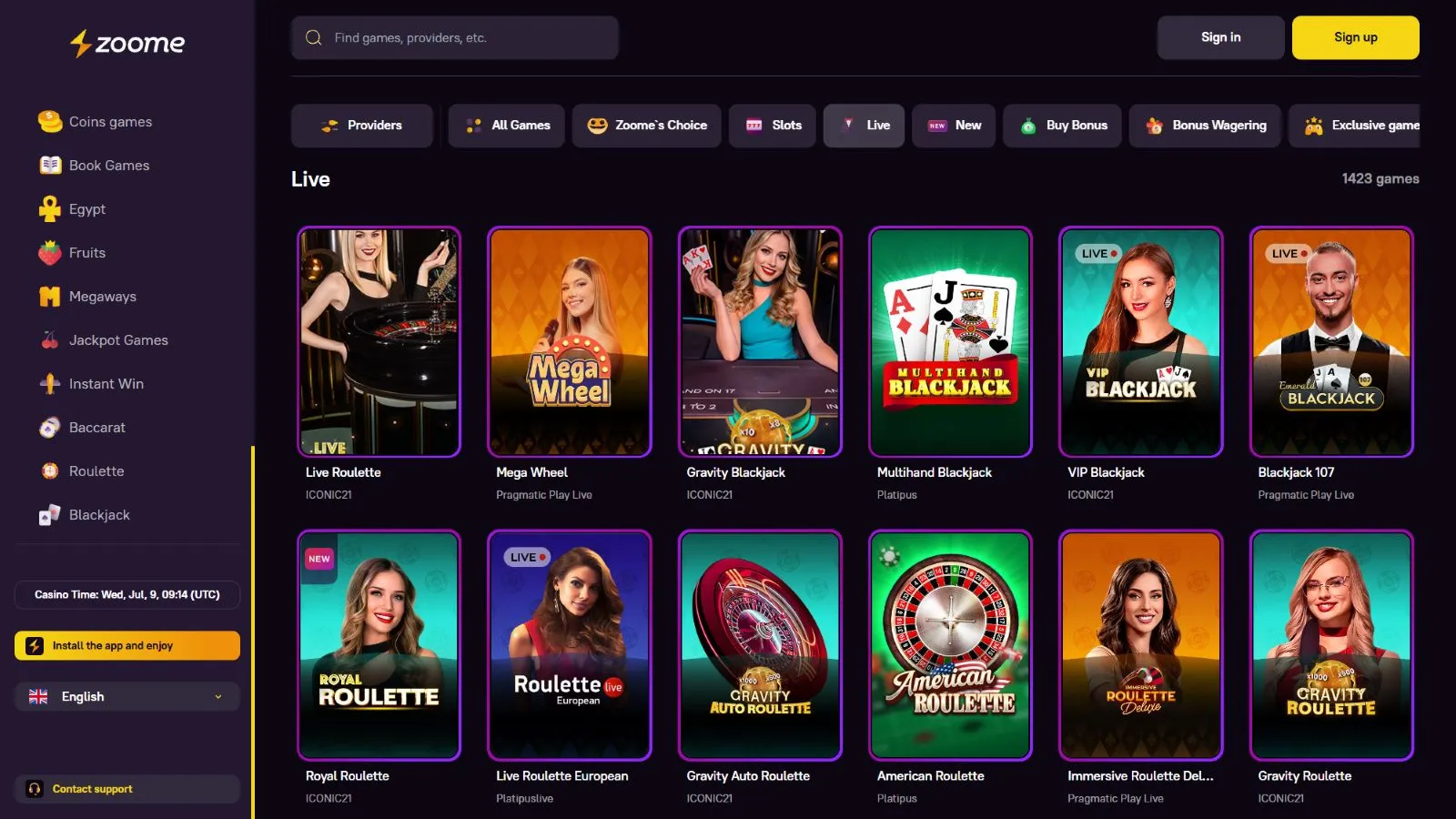 At Zoome casino betting on sports is not available yet, and you will be limited to playing only online casino games.