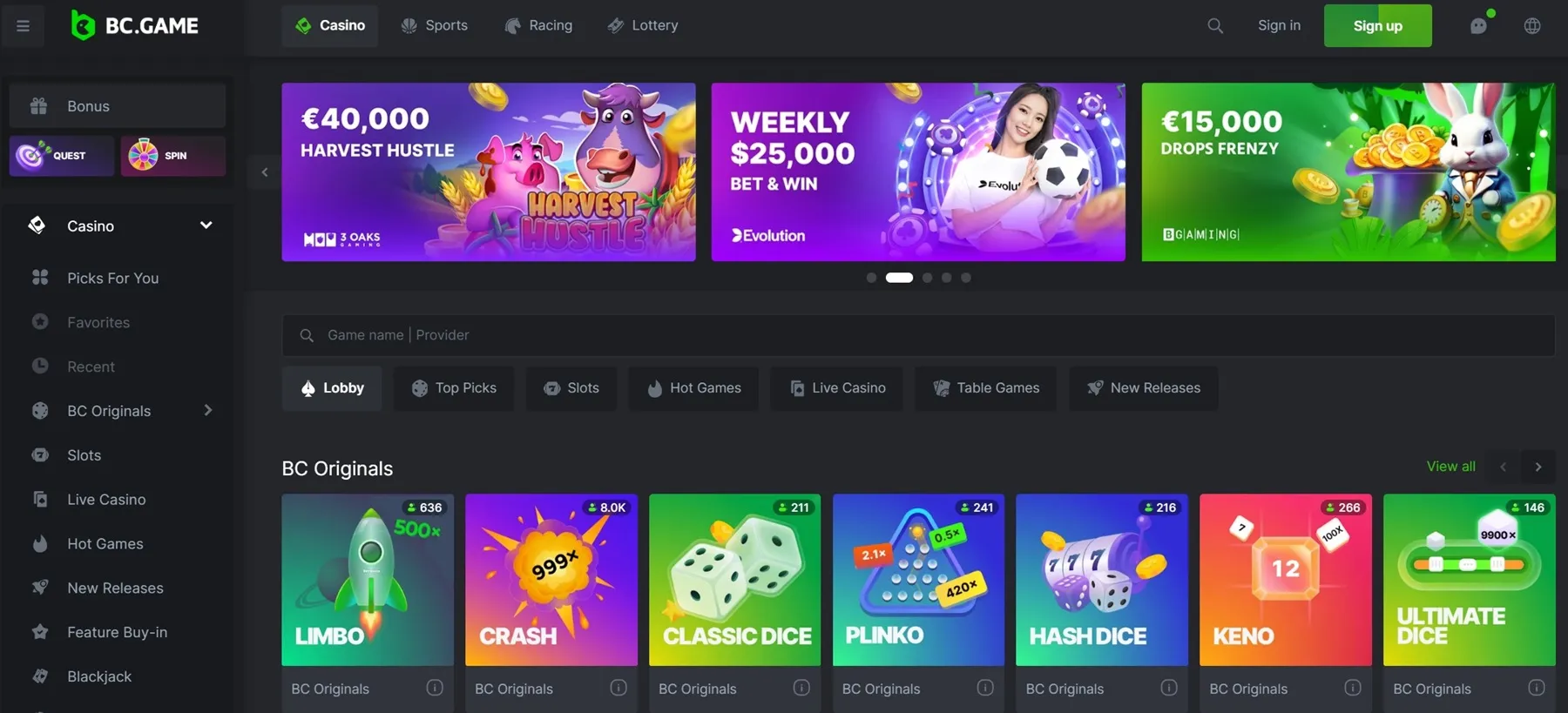 Якщо ви з тих, хто хоче спробувати все, вам сподобається, що на платформі є абсолютно всі типи ігор, включаючи понад 80 перевірено чесних ігор (provably fair) та Betplay Originals. Тут навіть проводяться щоденні живі покерні події!