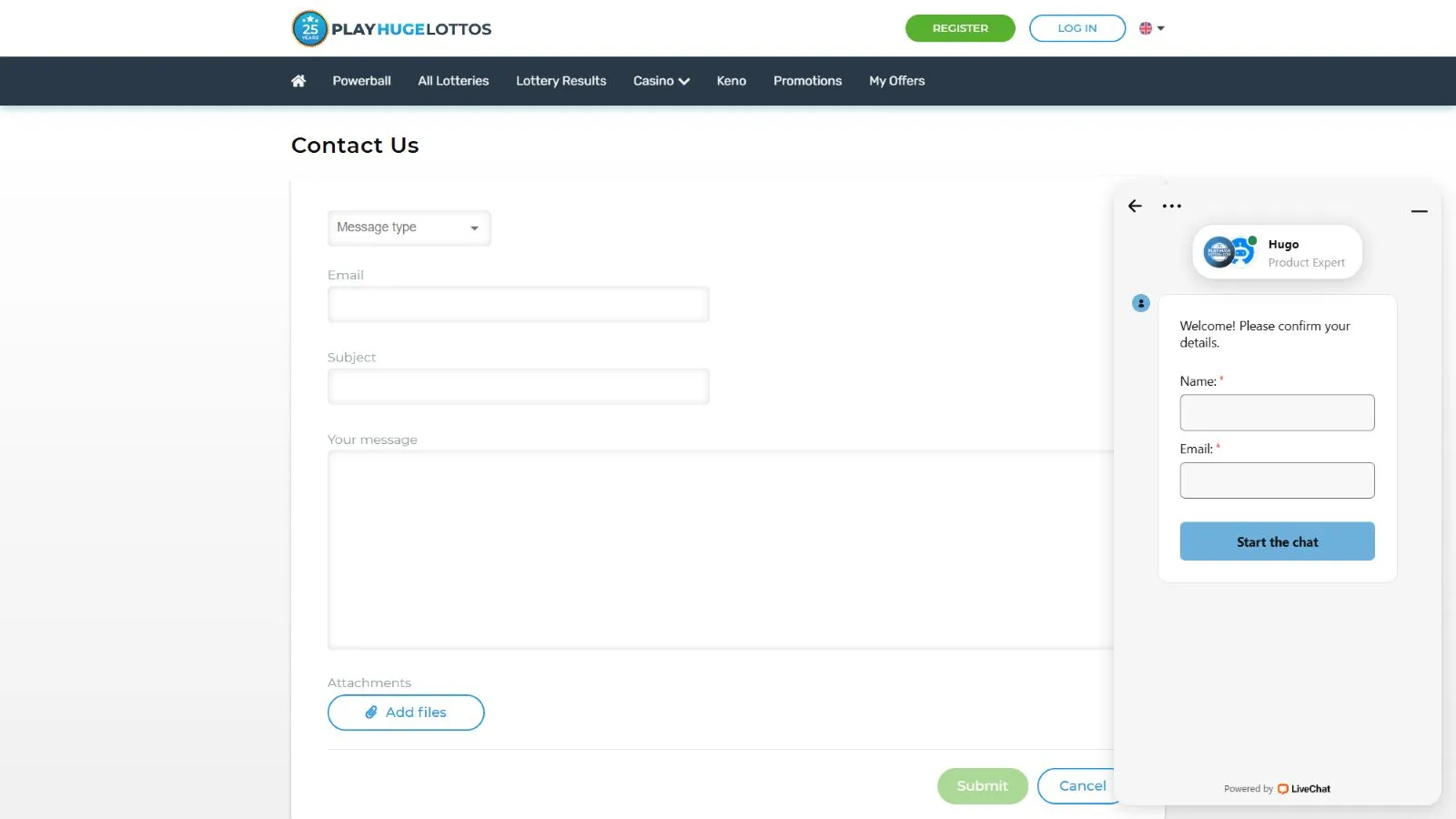 Для зв’язку зі службою підтримки PlayHugeLottos можна залишити свій номер для зворотного дзвінку. Тоді оператор подзвонить по телефону, вказаному у профілі користувача. Також можна миттєво вийти на зв’язок з представником служби підтримки, обравши «Миттєву допомогу» у розділі «Довідка».