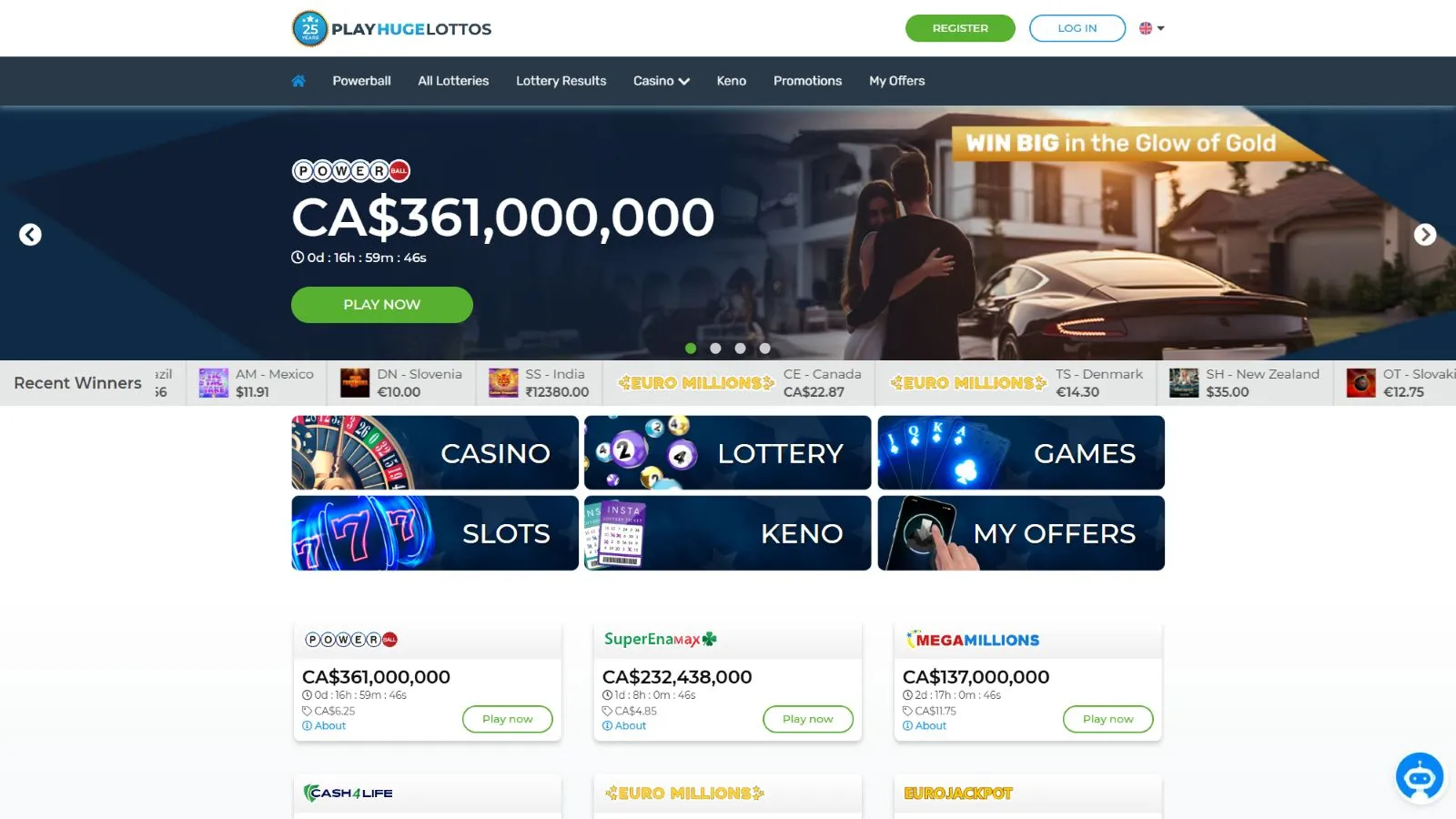 Портал PlayHugeLottos — це зручний спосіб грати в лотереї онлайн, в тому числі за допомогою криптовалюти. Десять мовних версій сайту відкривають доступ до біткоїн лотерей для гравців з різних частин світу. Користувачі можуть купувати лотерейні квитки за BTC в популярних розіграшах на кшталт Powerball, Mega Millions Max, EuroMillions та багатьох інших.
